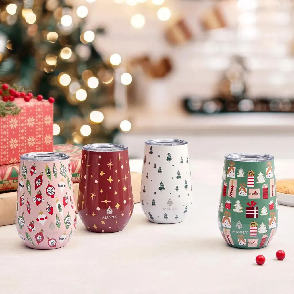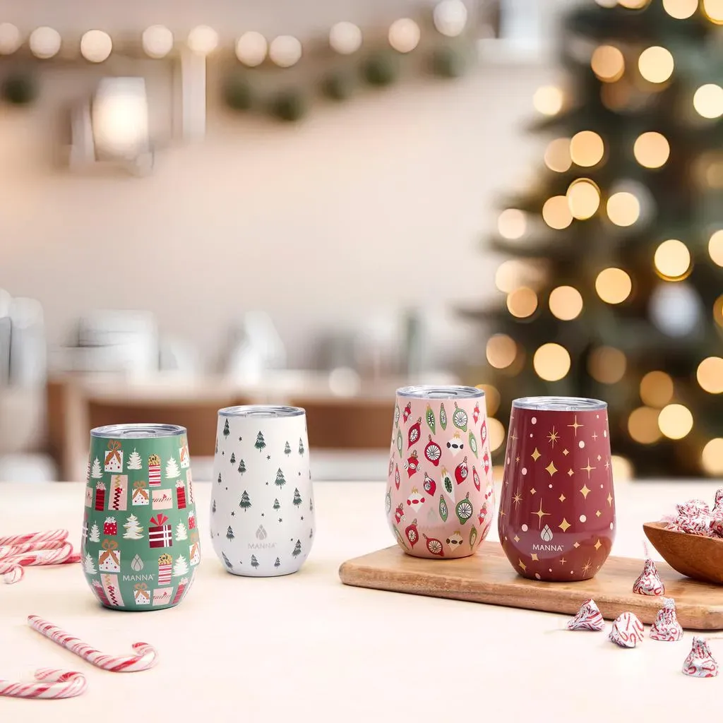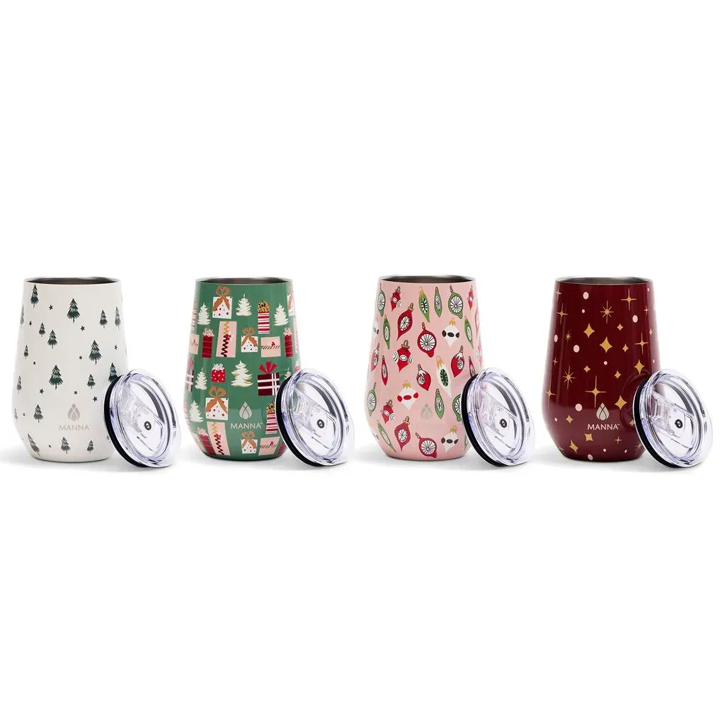 Manna Juego de Vasos Térmicos Navideños para Vino 4 Unidades / 354.88 mL / 12 oz